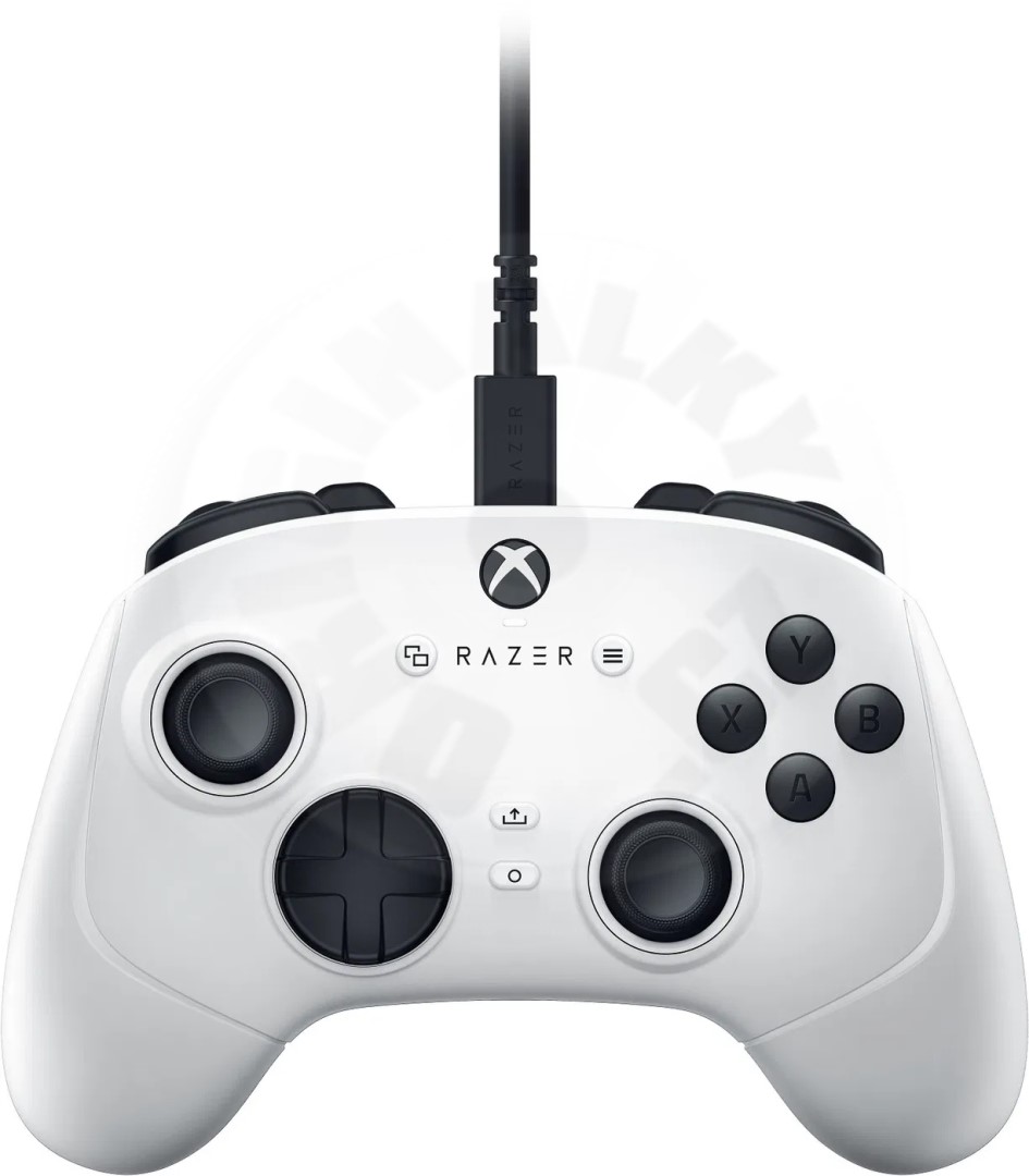 Gamepad pro PC a Xbox Series X|S, kompatibilní se systémem Windows 8/10/11, kabelové připojení, délka kabelu 3 m, 3,5mm Jack, USB-C (na ovladači), analogové páčky, uživatelské mapování tlačítek, hall Effect Joysticks, bílá a černá barva, - kabelové připojení, systémové požadavky Xbox nebo PC (Windows® 11 64-bit nebo vyšší), internetové připojení pro aplikaci Razer Controller, mechanická akční tlačítka, dotyková akční tlačítka Razer Mecha, multifunkční tlačítka, 4 Pádla ClickBack, 2 Nárazníky s vroubkovanou rukojetí, 2 analogové spouště s Hallovým efektem, analogové páčky, USB kabel 3 m USB C na USB A